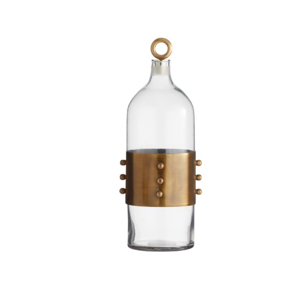 Frances Set of 2 Glass Decanters – Clear & Gold with Antique Brass Stoppers