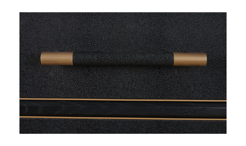 Bring timeless elegance to your living space with the Mako Large Black Sideboard. Designed with sophistication and practicality in mind, this modern storage unit features a striking black oak frame paired with antique gold detailing for a luxurious touch. Its spacious six-drawer layout provides generous storage for household essentials, making it a functional centerpiece for dining rooms, living areas, or hallways.
