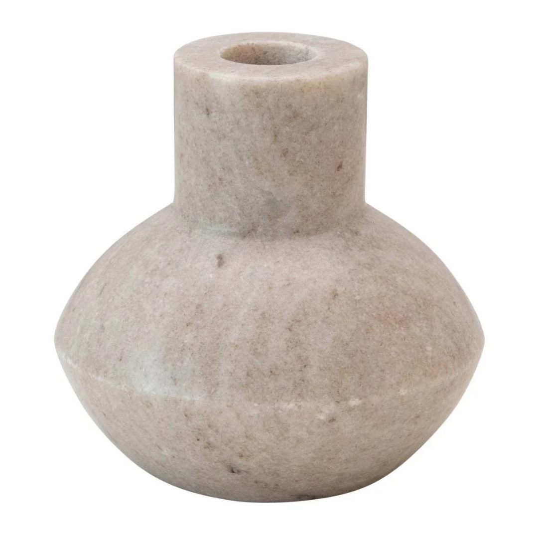 Add warmth and charm to any room with this 4" Marble Taper Holder. Crafted from natural marble in a soft beige tone, it brings effortless elegance and texture to your home décor. Designed with a smooth round base and a timeless silhouette, this candle holder creates a cozy, relaxing glow when paired with your favorite taper candle — perfect for boho, rustic, or modern interiors.