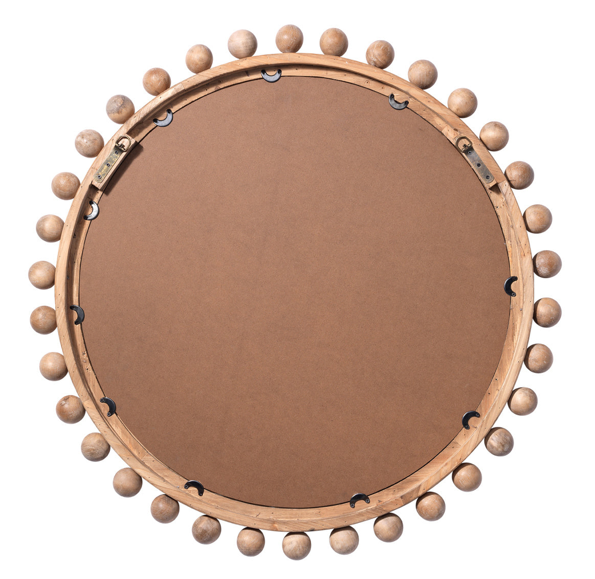 This handcarved wood wall mirror is ornamented with nearly three dozen small wood balls. The sweet yet sophisticated spherical accents... Show more