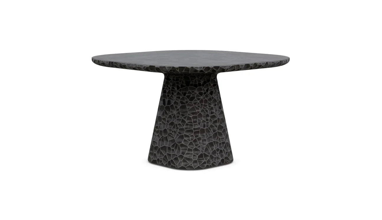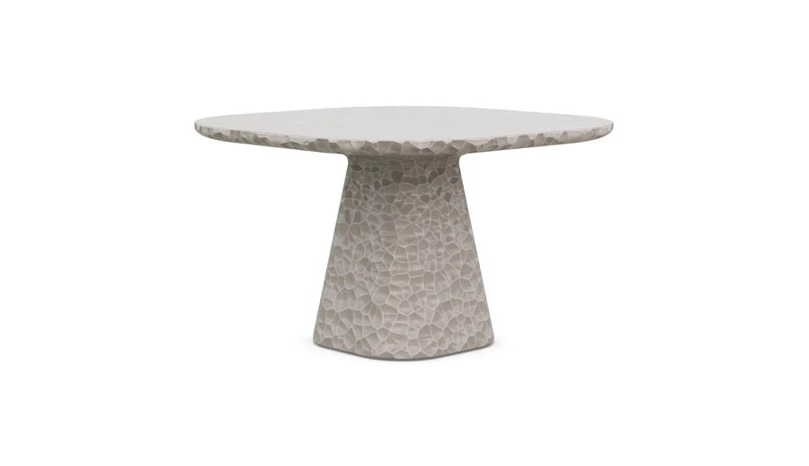 The distinctive charisma of the Panama Dining Table from Azzurro Living is a work of art with handcrafted, earthy details and elegantly enticing forms. The circular hand-carved details radiate old world charm, while the smoothly polished table top exudes sleek modernity. The abstract honeycomb texture, reminiscent of hammered metal, is reimagined in glass fiber reinforced concrete. The ability to withstand heavy use and original character of concrete mesmerizes, while remaining extremely resistant to harsh weather and high traffic environments. The tasteful simplicity of the Panama Dining Table is the easy choice for durable, elegant furniture.