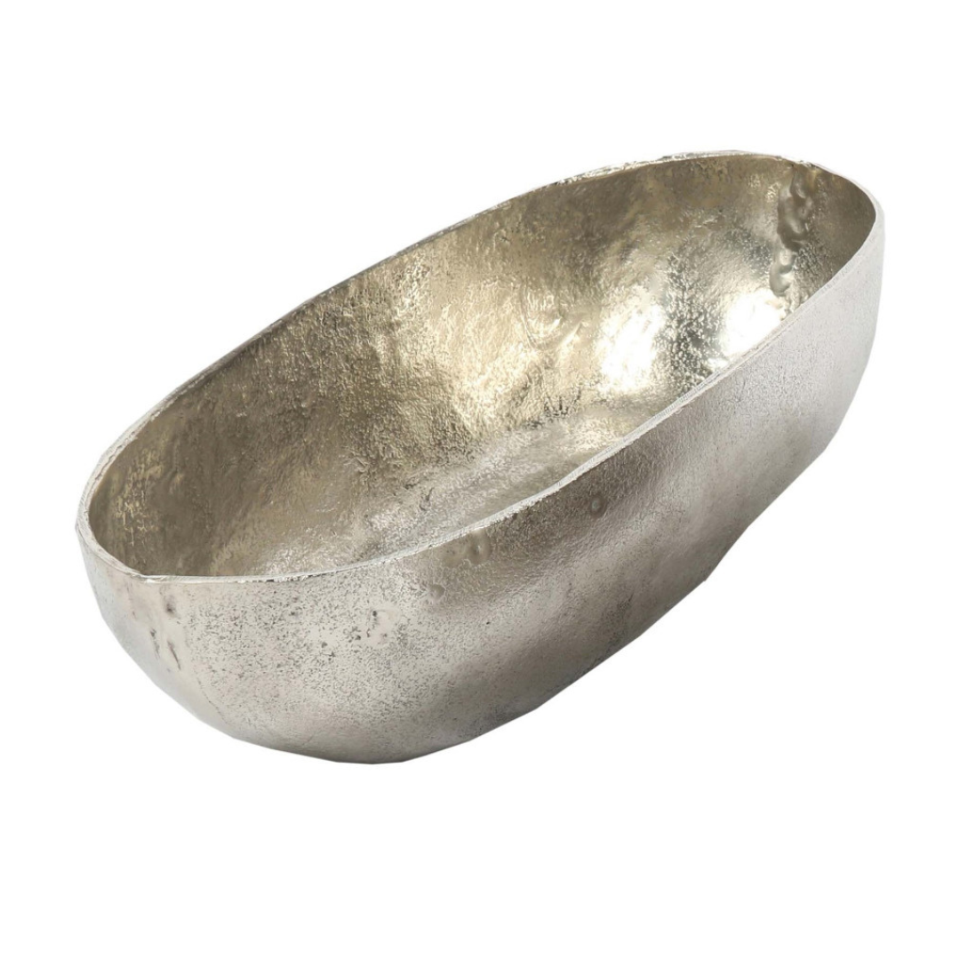 Contemporary Nickel Finish Oval Bowl – Elegant Home Décor Accent