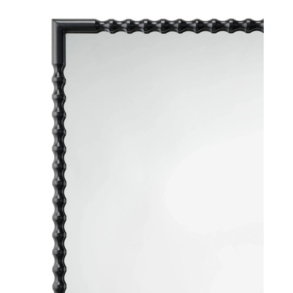 This striking yet understated wall mirror features a handwrought metal frame in a sleek black satin finish. Hang it horizontally above a sofa or powder room vanity, or vertically to illuminate an entryway. Its elegant, simple lines beautifully enhance your décor without overpowering it.