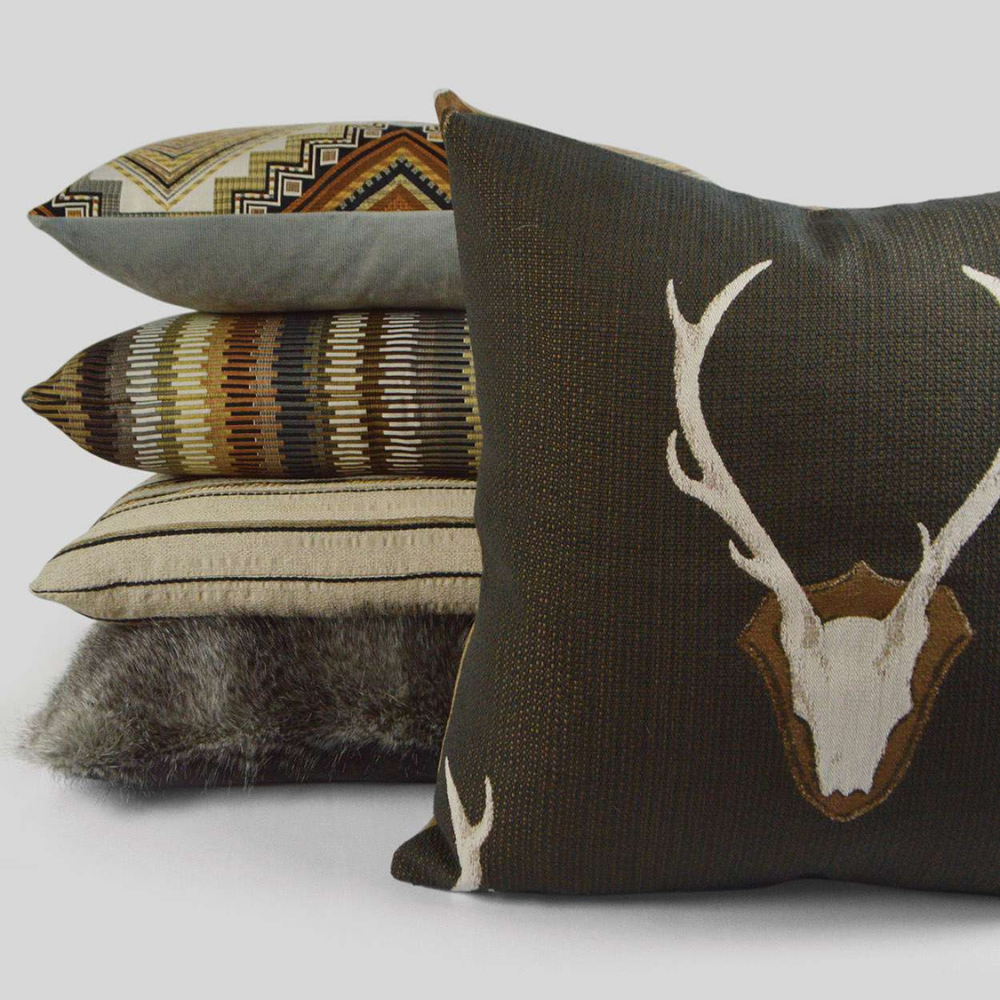 Each pillow includes a removable feather down insert. Designed for indoor use.